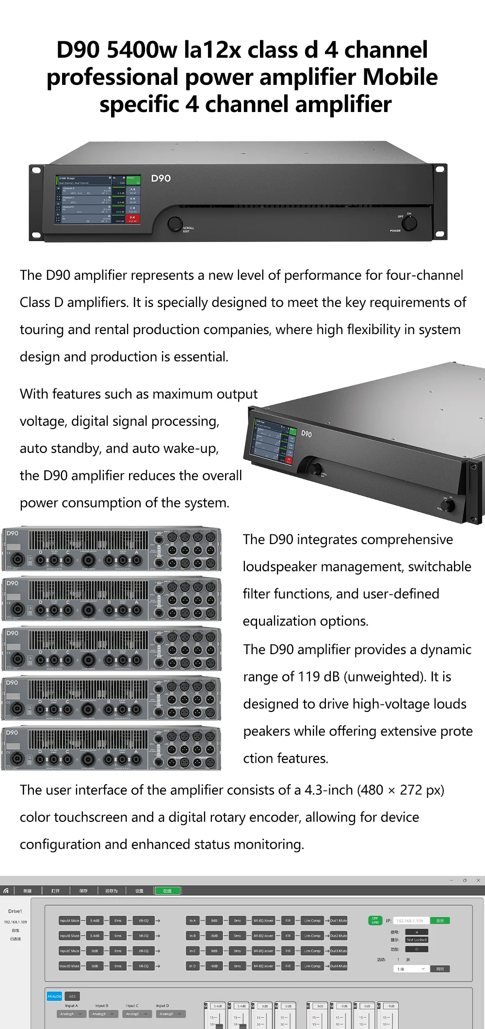 D90 5400w la12x class d 4 channel professional power amplifier Mobile specific 4 channel amplifier