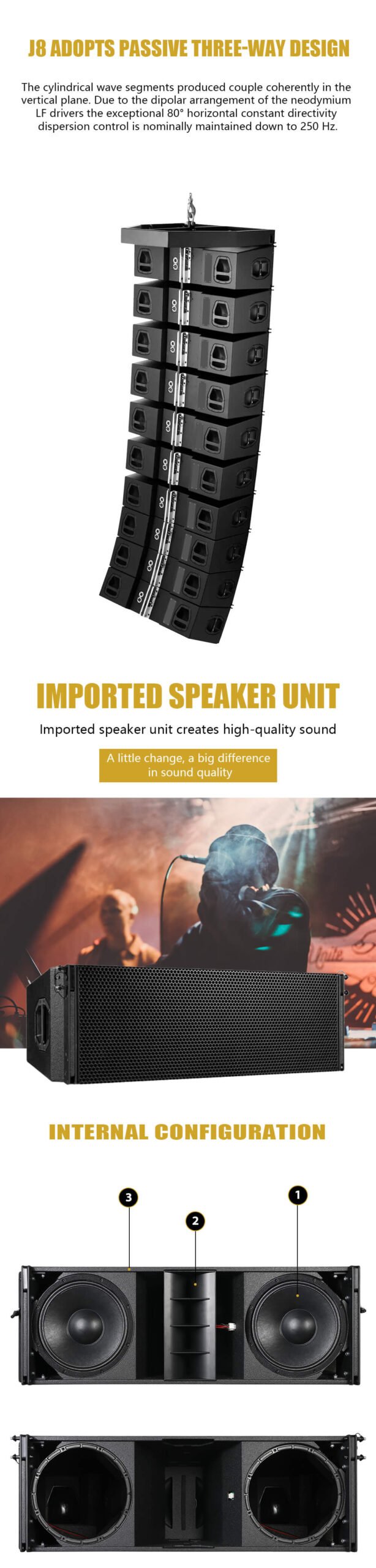 •    Configuration: Large-format line array, 3-way