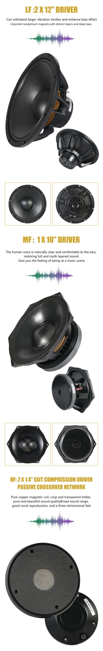 •    HF: 2 × 1.4″ compression drivers