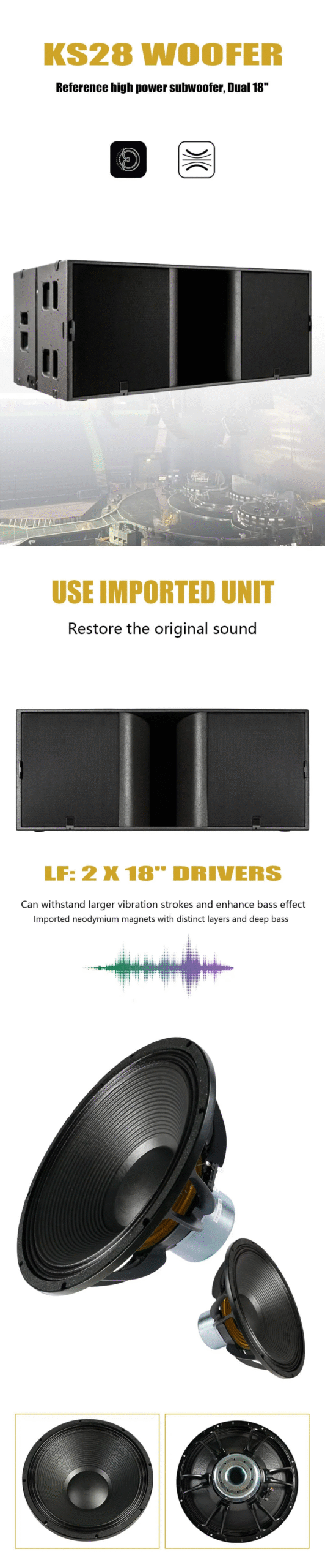 • Configuration: Reference subwoofer, dual 18″