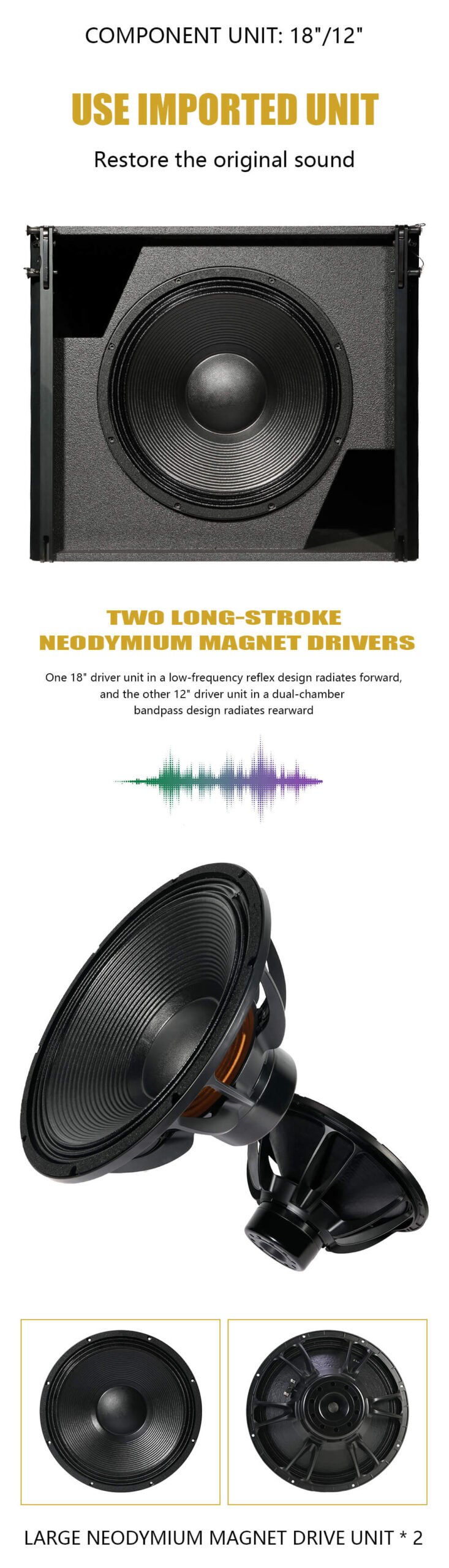•    LF: 1 × 18″ (front) + 1 × 12″ (rear)